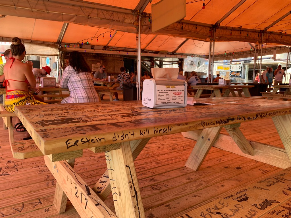 My husband and I have been on a 10 day long RV road trip through the South and our last stop was the Panhandle. Our campsite was in Alabama and our destination was right on the Florida Alabama line. Being Kenny Chesney fans, we were curious what this place that he sang about was and when we looked it up, the Flora-Bama was an extremely famous beach bar right on the state line.